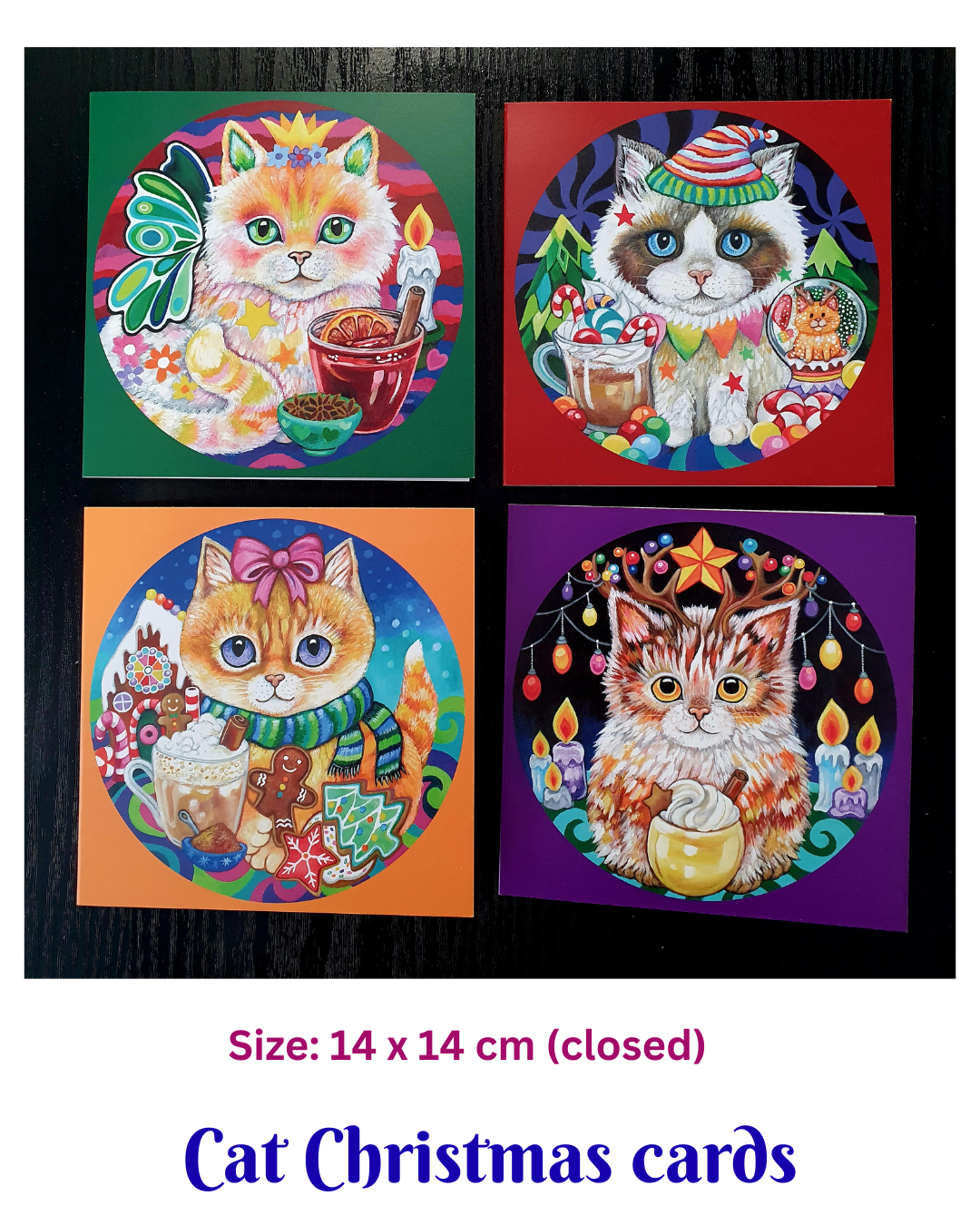 - 4 x Cat Christmas greeting cards on premium card + envelopes