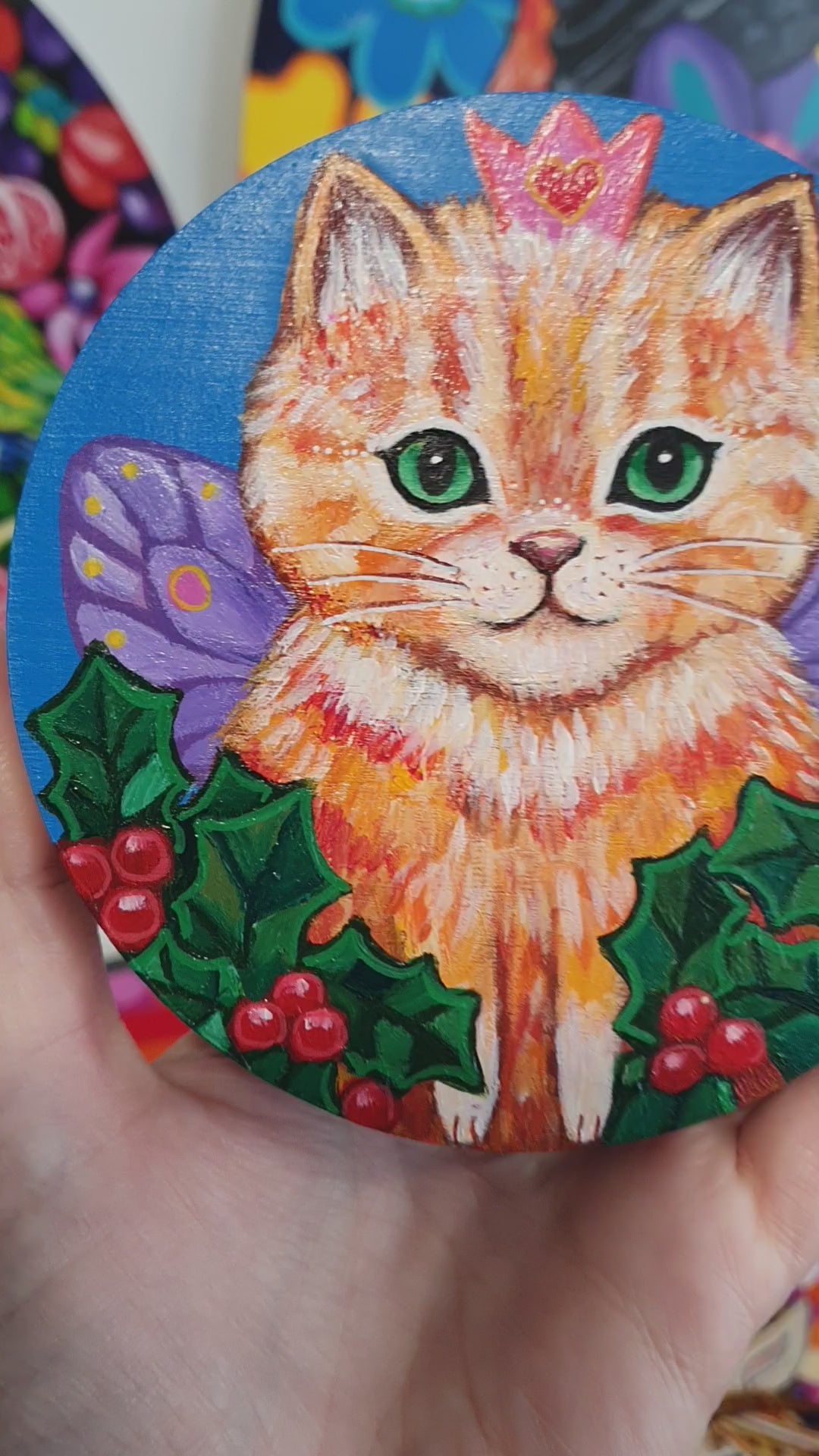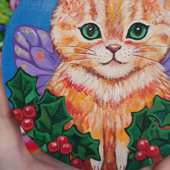 Holly is the cutest and sweetest of Cat-fairies. She loves to hang out in holly shrubs and wreaths to absorb the festive cheer from the humans who love Christmas. With those positive vibrations, her wings gain extra power to fly around and grant special Holly fairy wishes to all who have a special wish in their hearts.