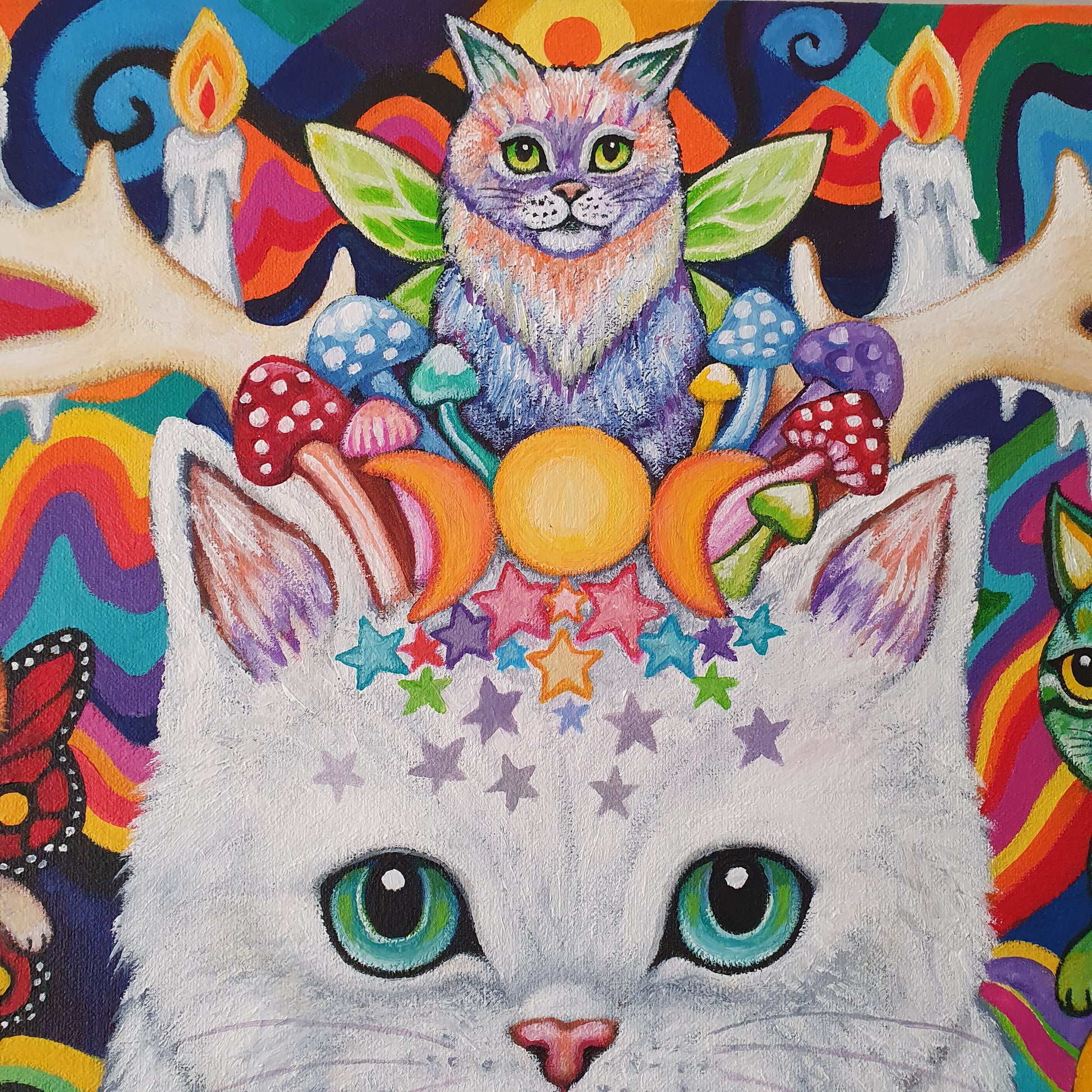 Maple is a princess in the realm of moth-winged snow cats. She is known as a Maven due to her deep knowledge and understanding of mother nature and the changes in seasons. She is the mistress of change and renewal, using her wintery nature to encourage the leaving behind of old thoughts and patterns of behaviour that are not serving our higher purpose. As winter freezes over, a time of hibernation and stillness help clear a path for change. The ice starts to defrost, letting those old patterns melt away to make way for a springtime renewal.
