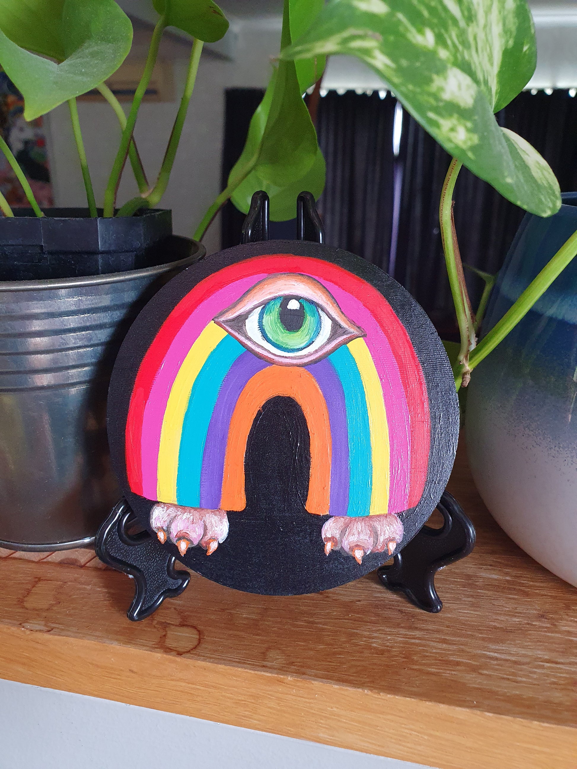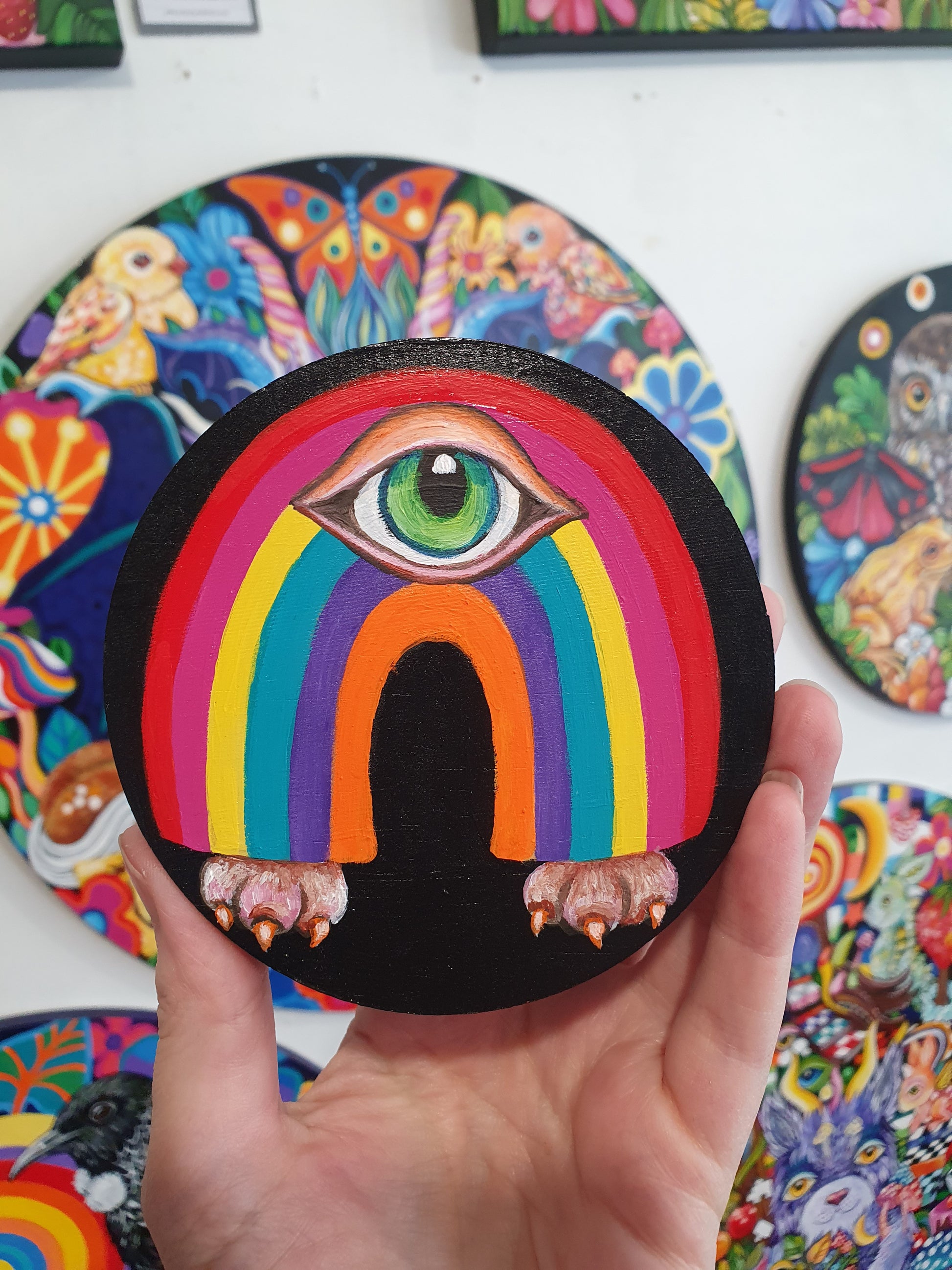 Rain is part of my ‘Eye Love You’ series of mini paintings. These paintings love to hang about in your home and remind you every day that you are loved. Look upon their magical eye and know that they think you are doing fabulously and are admiring you all the time for your strength, resilience and magnificent personality. Eye hope you can feel the love!